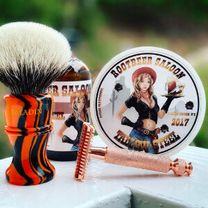 For the French forum rasage traditionnel, featuring cognac essential oil - Sitting at an old western bar with a cowboy hat on, eating grapes, and drinking cold sarsaparillas and root beers. There is something old-world and wild-west here. (2016)